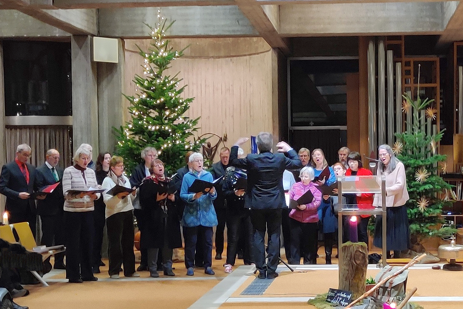 Der stimmungsvolle Chorgesang unterstrich die Botschaft, dass Gott auf leisen Wegen zu uns kommt, er kommt uns entgegen mit der Hoffnung auf neues Leben und als Licht in der Dunkelheit: